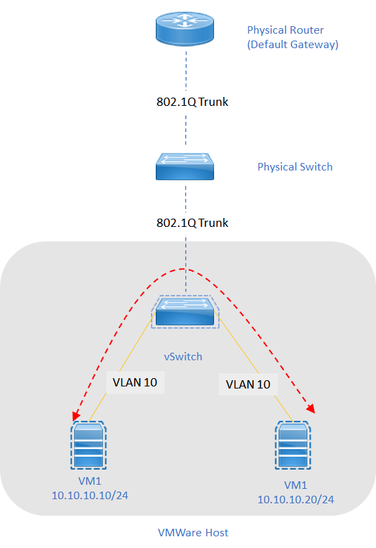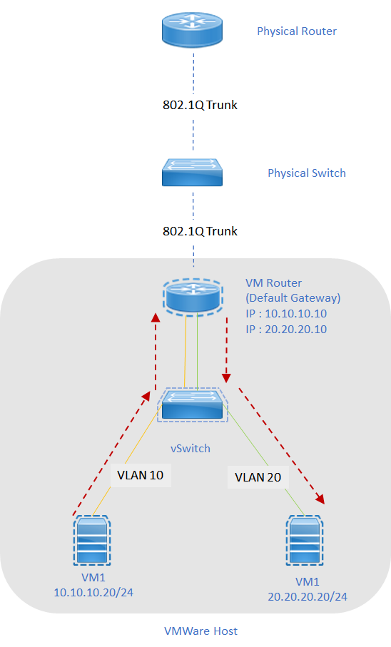 vSphere 상 의 서로다른 VLAN 간 통신을 위해서는 2가지 방법이 있습니다.